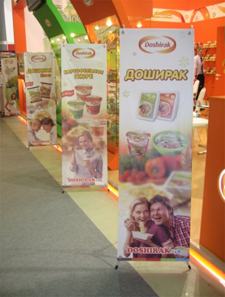 Наша компания «Доширак» разместила на стенде №60 (1 павильон зал С) свой полный ассортимент - как выпускаемую продукцию на заводе ООО «Доширак Коя» в подмосковном Раменском (всеми любимый «Доширак», а также лапша быстрого приготовления «Доширак Квисти» и картофельное пюре в стаканчиках «Доширак»), так и импортируемую из Южной Кореи - продукты «Сытный обед Доширак», «Доширак Premium» и напиток «Aloe».