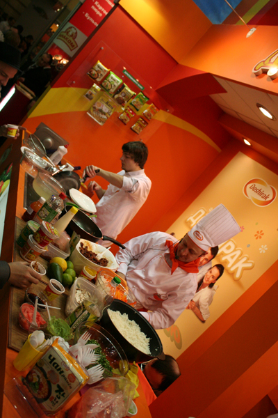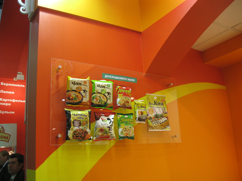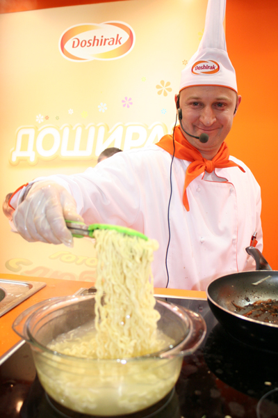 Роман Суворов на протяжение всей выставки готовил традиционную корейскую лапшу для варки всех вкусов: «Чан Рамен» с бульоном на основе пасты «Дэн Чан», «Чачжан Мен" с черным соусом "Чачжан», а так же угощал посетителей выставки новинками: « Доширак Ла Паста», «Доширак Плюс» и « Картофельное пюре Премиум».