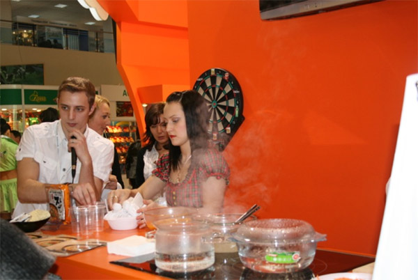 На нашем стенде посетители выставки смогли попробовать настоящую корейскую лапшу на все вкусы: «Пибим Мён» с кисло-сладким соусом Пибим, «Чачжан Мён» с соусом Чачжан и "Чан Рамён". В течение работы всей выставки на нашем стенде повар и его очаровательная помощница готовили лапшу и угощали посетителей выставки.
