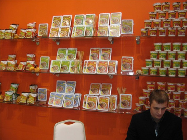 Наша компания «Доширак» разместила на стенде №60 (1 павильон зал С) свой полный ассортимент - как выпускаемую продукцию на заводе ООО «Доширак Коя» в подмосковном Раменском (всеми любимый «Доширак», а также лапша быстрого приготовления «Доширак Квисти» и картофельное пюре в стаканчиках «Доширак»), так и импортируемую из Южной Кореи - продукты «Сытный обед Доширак», «Доширак Premium» и напиток «Aloe».