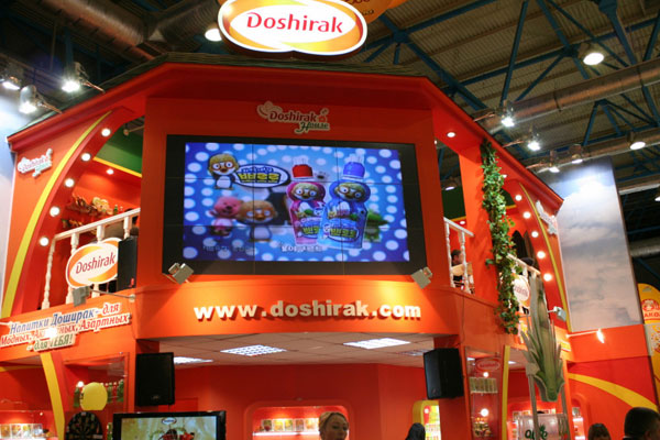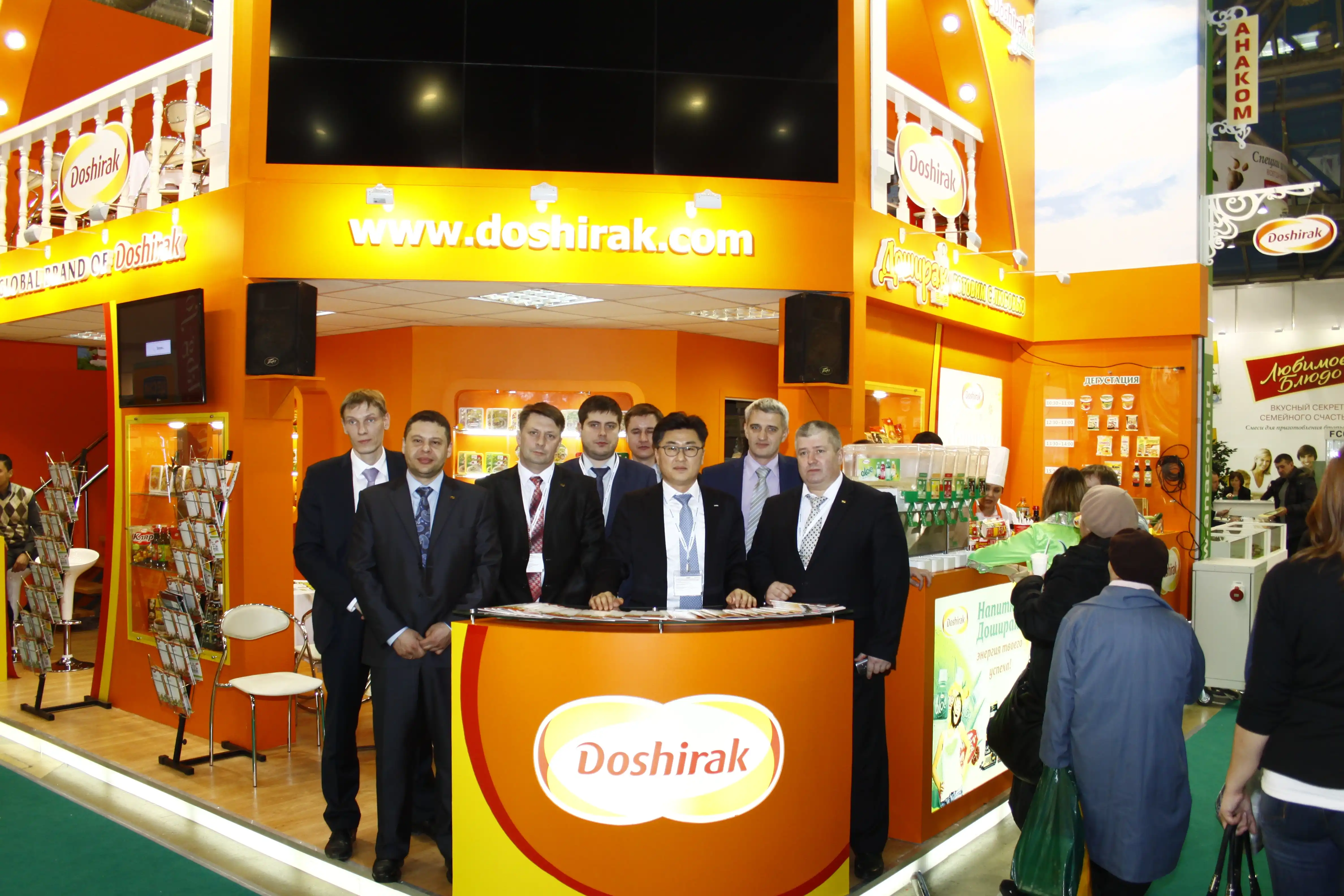 Наша компания «Доширак Рус» разместила на своем стенде № 1B40 (павильон 1.Н) полный ассортимент продукции, выпускаемой на заводах ООО «Доширак Коя» и ООО «Доширак Рязань»: всеми любимый обновленный «Доширак», лапшу быстрого приготовления «Доширак брикет Квисти», «Доширак брикет Рамен», «Картофельное пюре Доширак» в стаканчиках, «Овсяная каша Доширак» в стаканчиках, импортируемую из Южной Кореи продукцию «Доширак Премиум», «Доширак Сытный Обед», напитки «Aloe», кофе «Santafe», напитки «Fruit4u», а так же традиционную корейская лапша для варки «Пибим Мен", "Чан Рамен" и «Чачжан Мен».