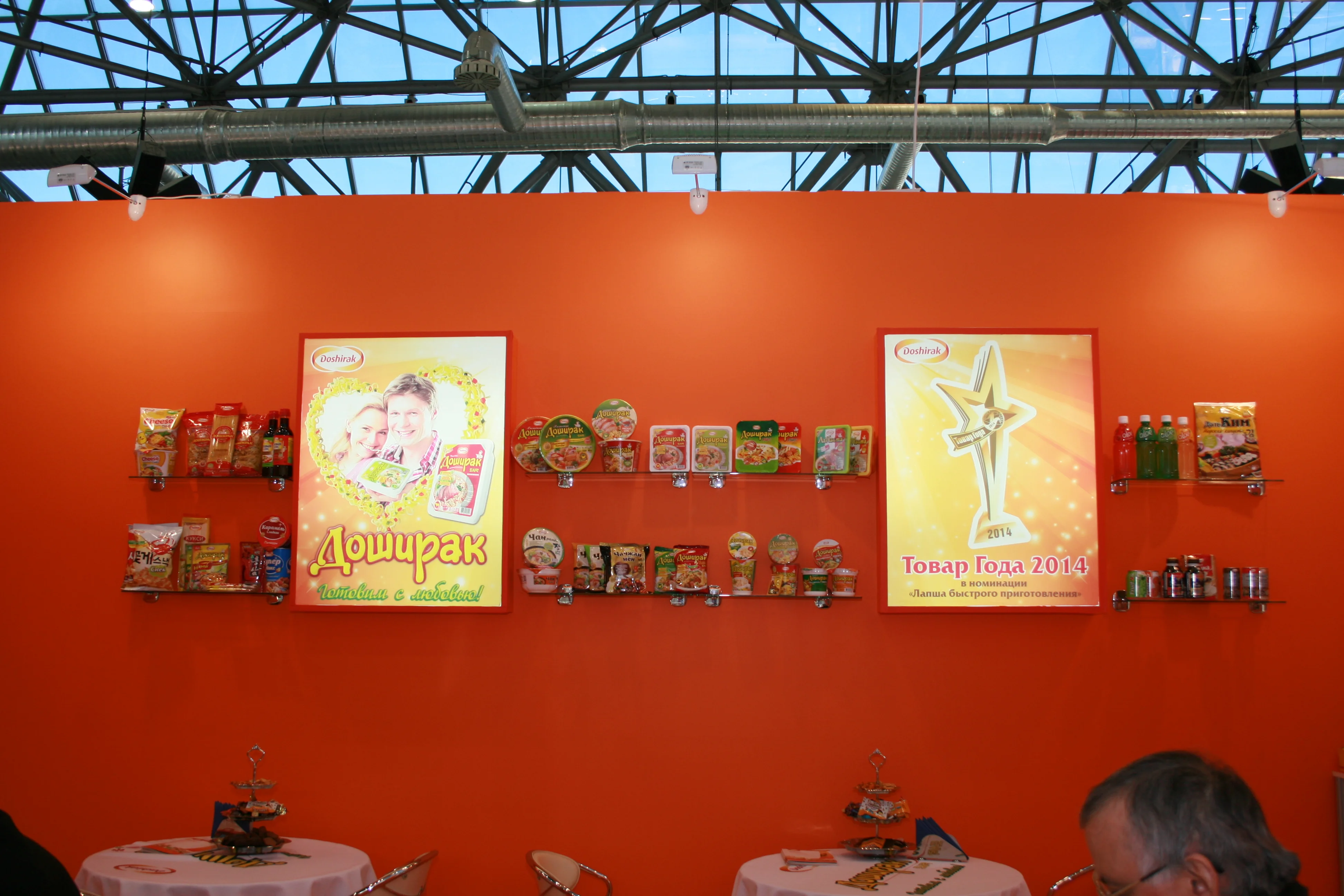 Стенд компании «Доширак Рус» располагался в самом сердце выставки - в центре павильона «Форум» (стенд № FD050). На нашем стенде был представлен полный ассортимент продукции, выпускаемый на наших заводах в России (ООО «Доширак Коя», г. Раменское и ООО «Доширак Рязань», г. Рязань), а также ряд товаров, которые мы импортируем из Южной Кореи.