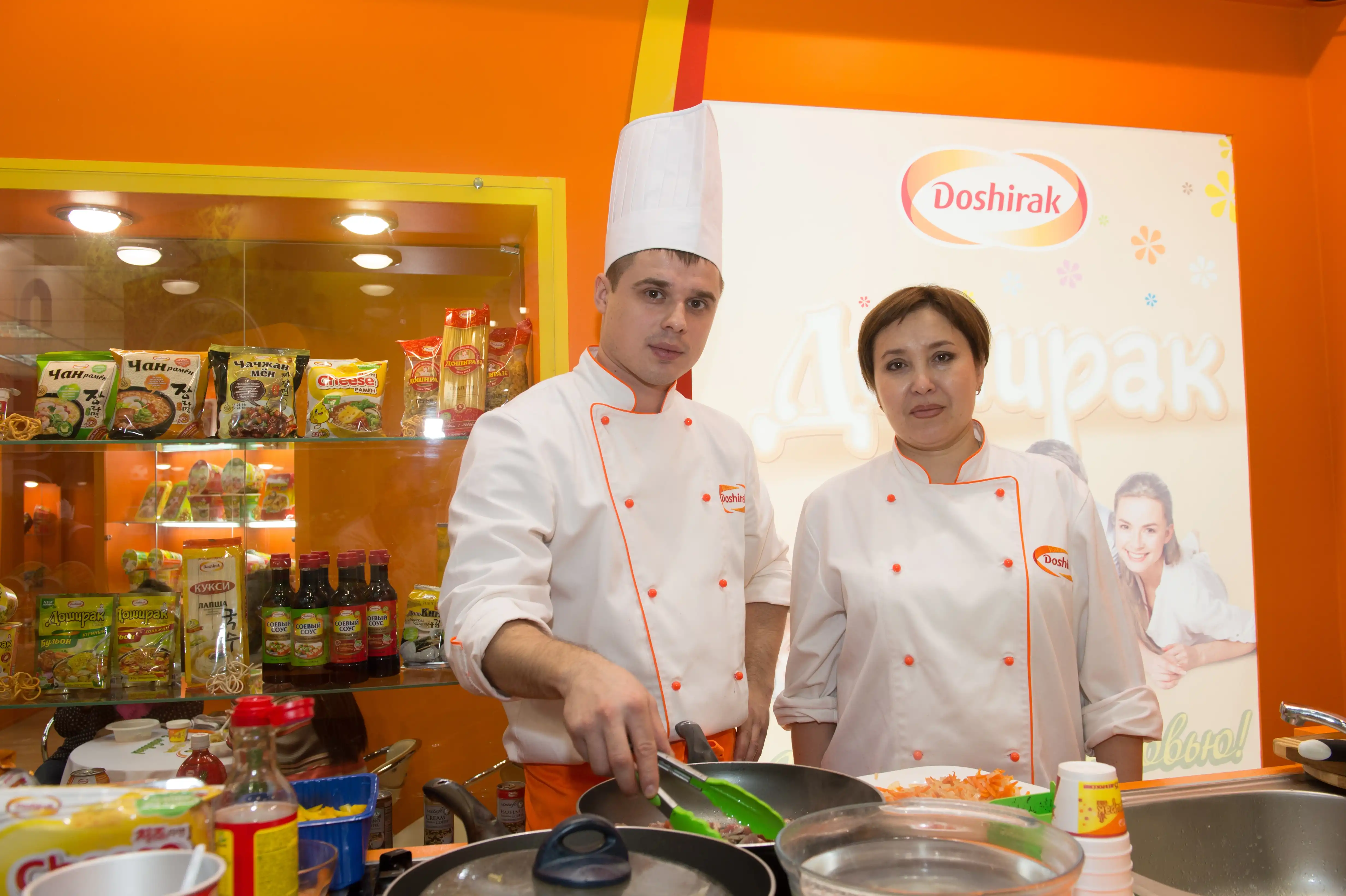 В рамках выставки мы проводили ежедневные дегустации наших новинок. Специально приглашенный профессиональный повар, Владимир Тавлинцев, на протяжение всех дней проведения выставки готовил изумительную традиционную корейскую лапшу, аромат которой разносился по всему павильону, а её вкус по достоинству оценили как гости нашего стенда, так и наши соседи по выставке!