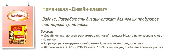 30 000 р. в номинациях: Дизайн упаковки, Дизайн плаката, Сценарий ролика